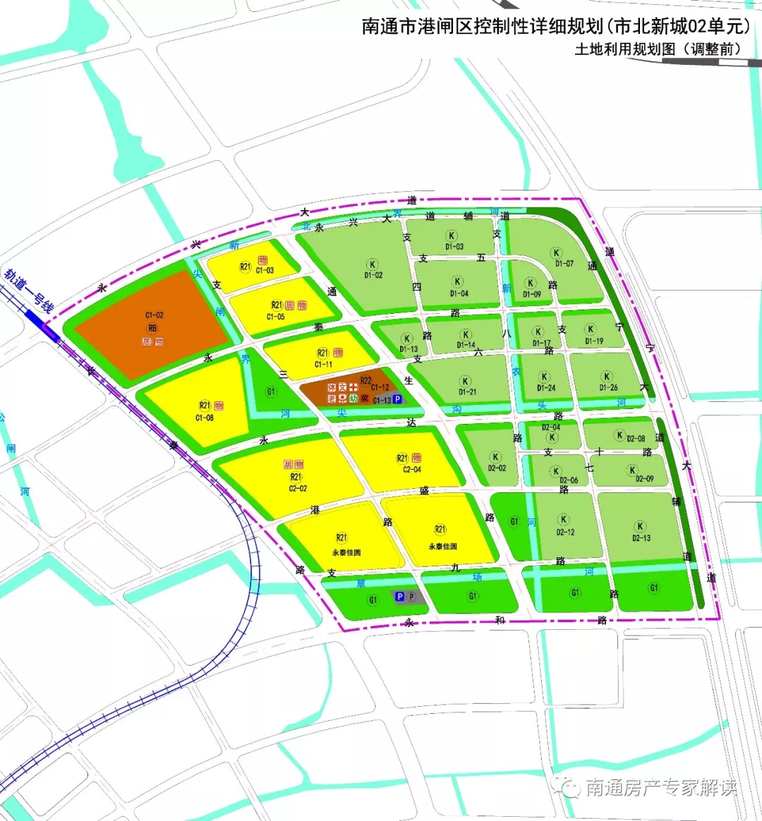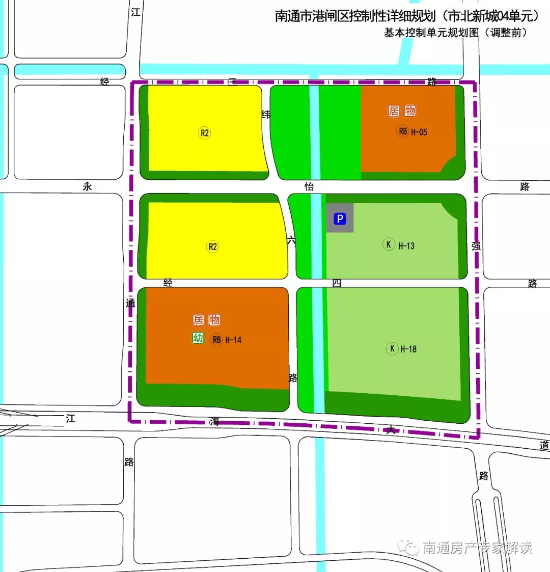 (1)根据南通市城市总体规划,将国强路西、永怡路南侧的K类用地调整为居住用地,原地块内的停车设施调整至永怡路北侧,面积不变(0.4公顷)。
