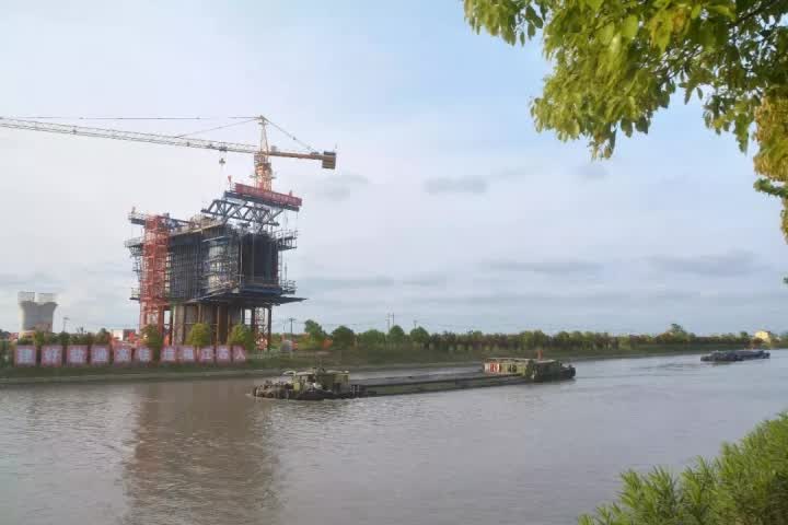 盐城南特大桥跨通榆河228m连续梁拱桥是全线较大的控制性工程,也是全国在建较大跨度350公里时速连续梁拱桥。