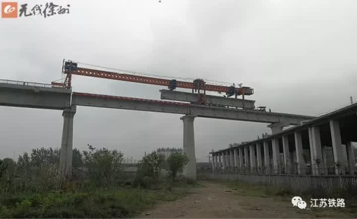 4月29日上午11:30,在徐州彭祖大道与京沪高铁交叉点附近,随着架桥机将最后一片32米长T梁稳稳安放在38米高的桥台上,徐通铁路京沪高铁上行联络线实现贯通,也标志着徐通铁路(徐盐段)全线架梁施工作业全面完成。