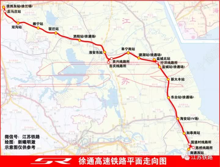 徐通铁路徐盐段正线全长316.27公里,设计时速250公里,有江苏铁路“金腰带”之称,具有京沪高铁第二通道的重要功能,全线设徐州东、后马庄、双沟、睢宁、宿迁、洋河北(预留)、泗阳、新淮安东、阜宁南、建湖、盐城新站11个车站。
