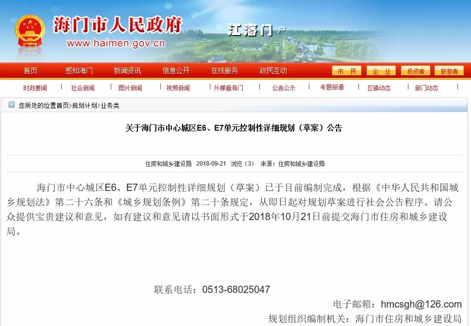 但是一份“关于海门市中心城区E6、E7单元控制性详细规划(草案)公告”的发布,似乎让我见到了三厂未来发展的端倪。